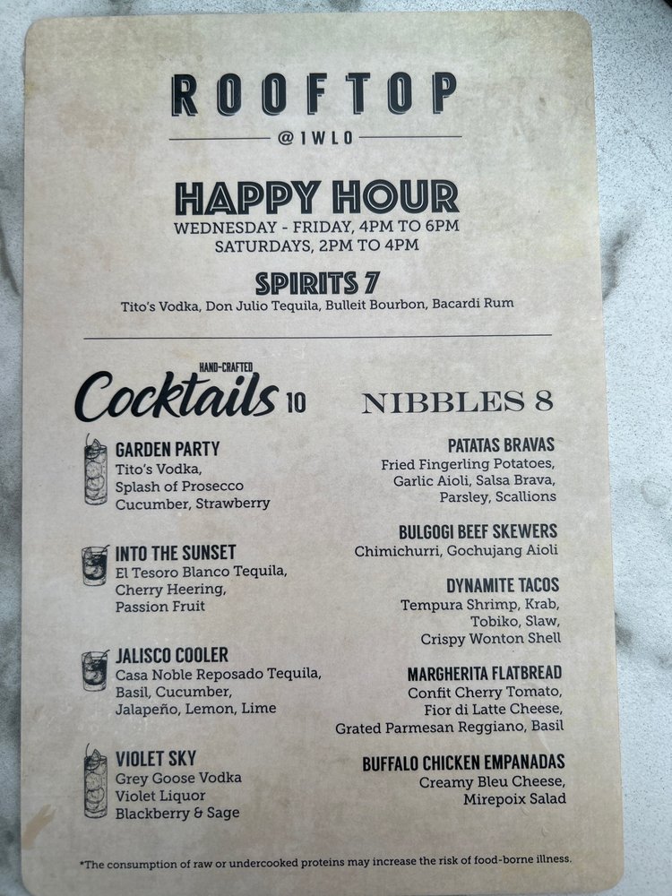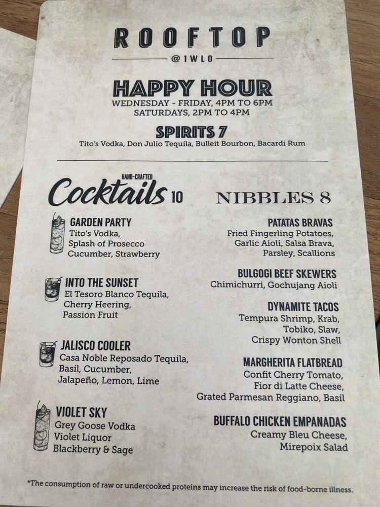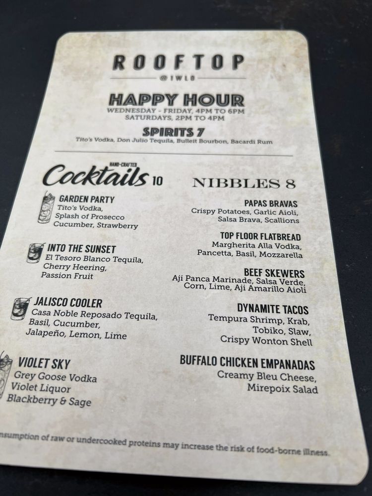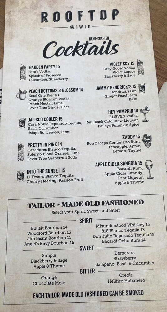 Welcome to Rooftop @1WLO, a chic cocktail bar and tapas restaurant located in Fort Lauderdale, FL. This trendy and upscale spot offers a variety of small plates perfect for sharing, along with an extensive cocktail menu. With a DJ spinning tunes and Happy Hour specials, Rooftop @1WLO is the perfect place for late-night fun and dancing. The restaurant also boasts amenities such as outdoor seating, free Wi-Fi, and pool table, making it ideal for groups and casual gatherings. The diverse menu includes many vegetarian options, ensuring there is something for everyone to enjoy. Don't miss out on the best nights on Wednesdays, Fridays, and Saturdays, where the atmosphere truly comes alive. Experience the vibrant energy of Rooftop @1WLO and indulge in a culinary adventure unlike any other.